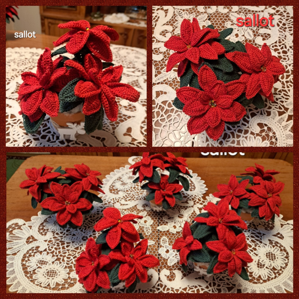 3 ágas horgolt Mikulásvirág eladó. Dekorációnak irodába, kirakatba, váróterembe, tárgyalóba, stb... ajánlom. 8 cm-es cserép mérete.