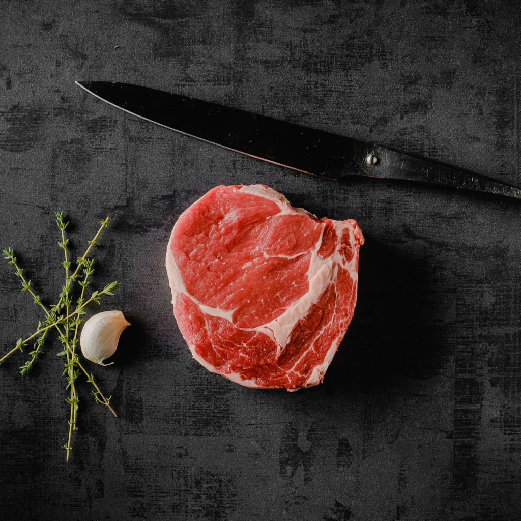 Rib Eye steak Nyaktól a hát középső részéig, a marha bordájának gerinc felöli, húsos része (rib = borda). Rib Eye steak 3 cm vastagságú szelet Jellegzetessége hogy a közepén van egy szép darab faggyú, ami a marha két izmát választja el. Zsírossága miatt az egyik legintenzívebb ízű, rengeteg steakimádónak esik erre a választása, szemben a jóval drágább bélszínnel.
