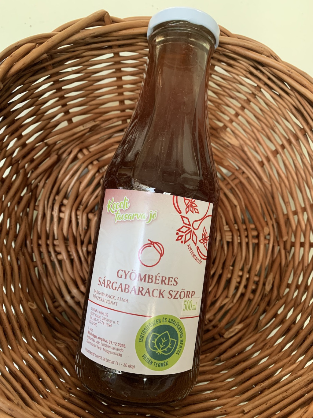 Hagyományos eljárással, természetes alapanyagok felhasználásával készült gyümölcs, fűszernövény és virágszörpök, hozzáadott színezék és mesterséges aroma nélkül. Sárgabarack, gyömbér.