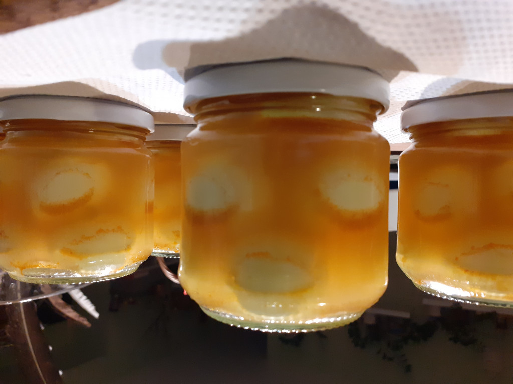 A fürjtojásokat először megfőzzük, megpucoljuk. Aztán több, mint 1 napig pácoljuk, végül pedig üvegekbe rakjuk és ecetes páclével felöntjük. A pác különleges, egyedi ízt ad a tojásoknak, amelyek így tartósabbak, könnyebben szállíthatóak. Gyakorlatilag egy egészséges készétel. Tartósítószer-, színezék-, adalèkanyagmentes. Csak a saját fürjeink tojását felhasználva készül, amelyeket tápmentesen, általunk kevert magkeverékkel etetünk. Felbontás nélkül hűtőben legalább 30 napig őrzi meg minőségét, felbontva hűtőben kb. 1 hétig eláll. Kiszerelés: 1 üveg 12 db fürjtojást tartalmaz mérettől függően. Összetevők: Főtt fürjtojás, lilahagyma, ecet, cukor, szemes bors, víz