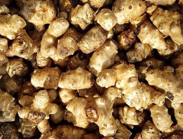 Ökológiai körülmények között termesztett csicsóka. Könnyebben pucolható, kevesebb elágazást tartalmazó fajta.