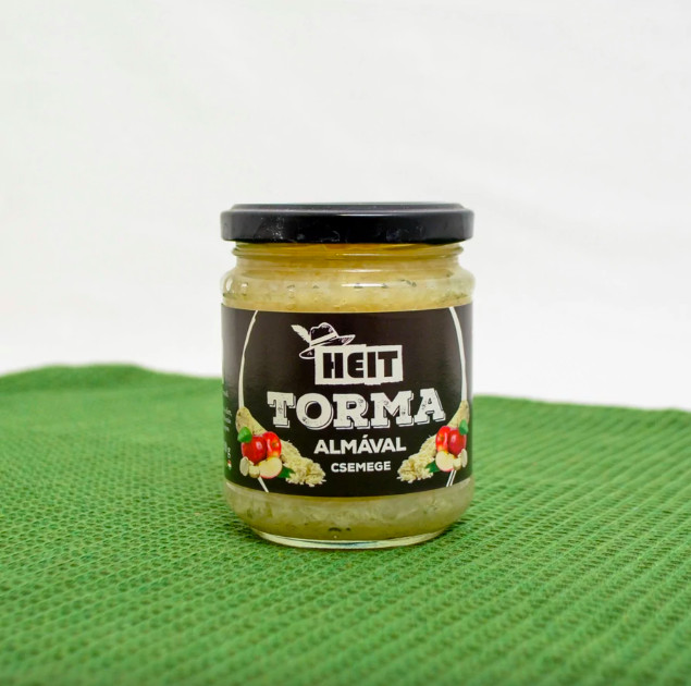Családbarát, lágyabb íz: alma és natúr torma együttese. Az almás tormát kifejezetten azok számára készítjük, akik nem szeretik az erős, csípős ízeket, de élvezni szeretnék a torma jótékony hatásait, vitamintartalmát. Előszeretettel ajánljuk kisgyermekes családoknak, akár várandós kismamáknak is. Összetevők: alma (32%), torma (28%), ivóvíz, ételecet, cukor, étkezési só, tartósítószer (nátrium-benzoát, kálium-metabiszulfit). Nettó tömeg: 200 G. A termék zellert és mustármagot is felhasználó üzemben készült.