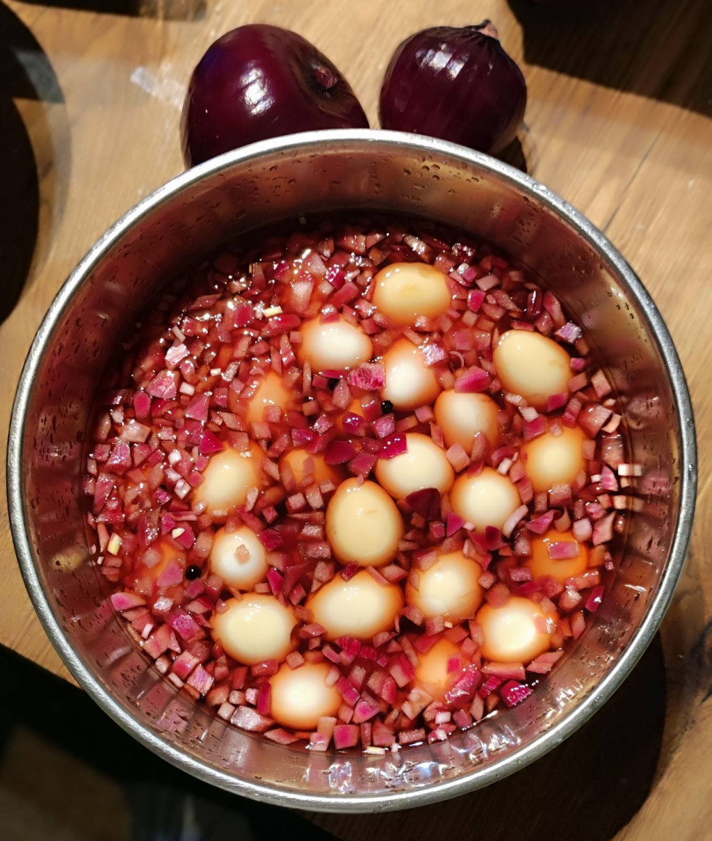 A fürjtojásokat először megfőzzük, megpucoljuk. Aztán több, mint 1 napig pácoljuk, végül pedig üvegekbe rakjuk és ecetes páclével felöntjük. A pác különleges, egyedi ízt ad a tojásoknak, amelyek így tartósabbak, könnyebben szállíthatóak. Gyakorlatilag egy egészséges készétel. Tartósítószer-, színezék-, adalèkanyagmentes. Csak a saját fürjeink tojását felhasználva készül, amelyeket tápmentesen, általunk kevert magkeverékkel etetünk. Felbontás nélkül hűtőben legalább 30 napig őrzi meg minőségét, felbontva hűtőben kb. 1 hétig eláll. Kiszerelés: 1 üveg 12 db fürjtojást tartalmaz mérettől függően. Összetevők: Főtt fürjtojás, lilahagyma, ecet, cukor, szemes bors, víz
