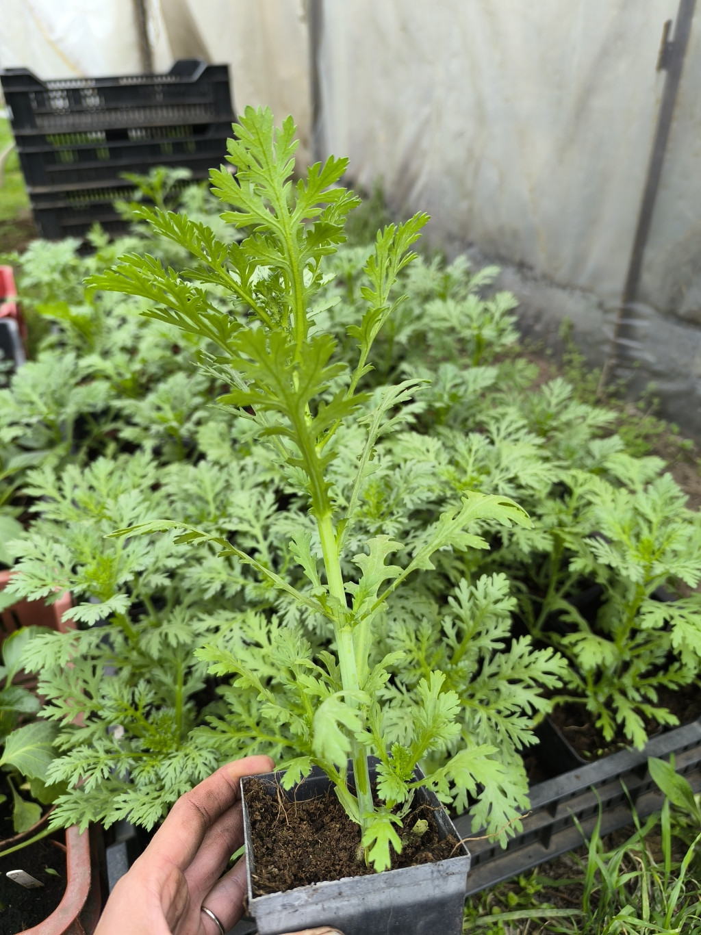 Kínai ehető krizantém. Halvány sárga virágú, bokrosodó. Teljes napsütést igényel. Nyár közepétől egészen a fagyokig virágzik. Virágait és zsenge leveleit használják salátákba, húsok fűszerezésére. A keleti konyha fűszere.