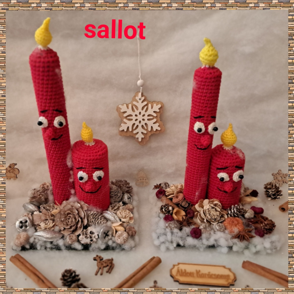 Közeledő ünnepekre hangolódva, fogadjátok szeretettel :-) Horgolt gyertya asztaldíszt készítettem, ledes mécsessel a biztonság kedvéért. Ajánlom otthonra, irodába, tárgyalóba, munkahelyre, orvosi várókba, üzlet kirakatába, osztályterem díszének. Egyedi ajándéknak vagy saját részre is tökéletes dekoráció. Más színű horgolt gyertyával rendelni lehet sallothorgolas.hu honlapomon található elérhetőségeimen. Méretek: ezüstös termésekkel - 17 cm hosszú, 14 cm széles, gyertya magassága 29 cm bordós termésekkel - 17 cm hosszú, 14 cm széles, gyertya magassága 27 cm