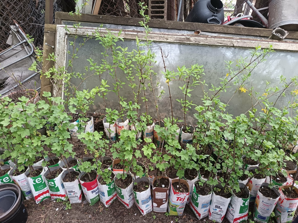 Piros ribizli tövek cserépben gyökereztettek. A tövek kb. 30-40 cm-esek. Termése kellemesen enyhén édes és savanykás. A ribizli B1-, B2-, B6-, valamint C- és E-vitaminban gazdag. Kiváló antioxidáns. Az antioxidánsok megkötik és eltávolítják a testből a szabad gyököket, melyek komoly betegségek, mint például a daganatos vagy a szív- és érrendszeri megbetegedések kialakulásában játszanak szerepet. Magas rosttartalmú. Pozitív tulajdonsága, hogy káliumtartalma révén - 100 grammban 316 milligramm - kihajtja a felesleges vizet a szervezetből, így kifejezetten jó szolgálatot tesz, mivel megszünteti a puffadást.