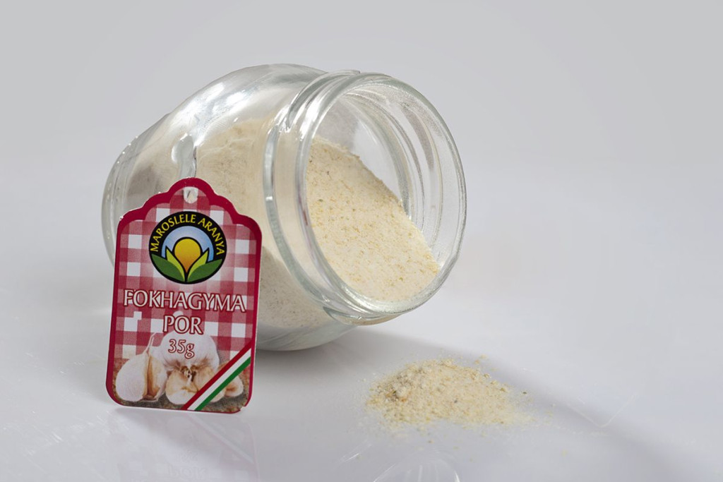 A megfelelő tisztítás és szárítást követően a megőrölt fokhagyma port üvegekbe töltjük. Semmilyen adalék anyagot nem adunk hozzá.