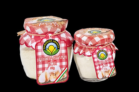 A megfelelő tisztítás és szárítást követően a megőrölt fokhagyma port üvegekbe töltjük. Semmilyen adalék anyagot nem adunk hozzá.