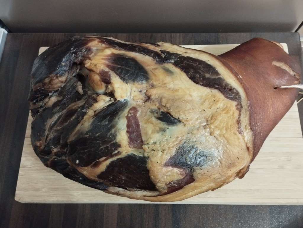 Füstölt mangalica első sonka,hagyományosan készítve, nitrites sót nem tartalmaz.