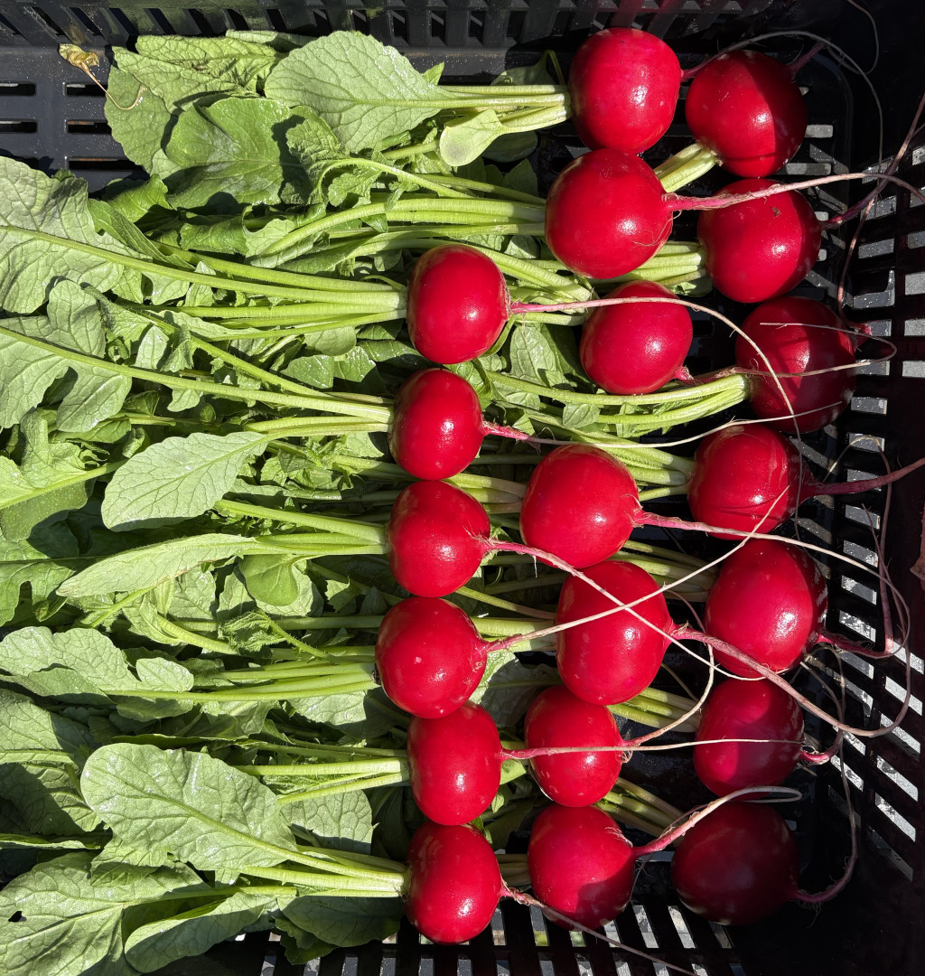 Friss roppanós hónapos retek, egy csómóban 5 darab retek van.Szép nagy zsenge.