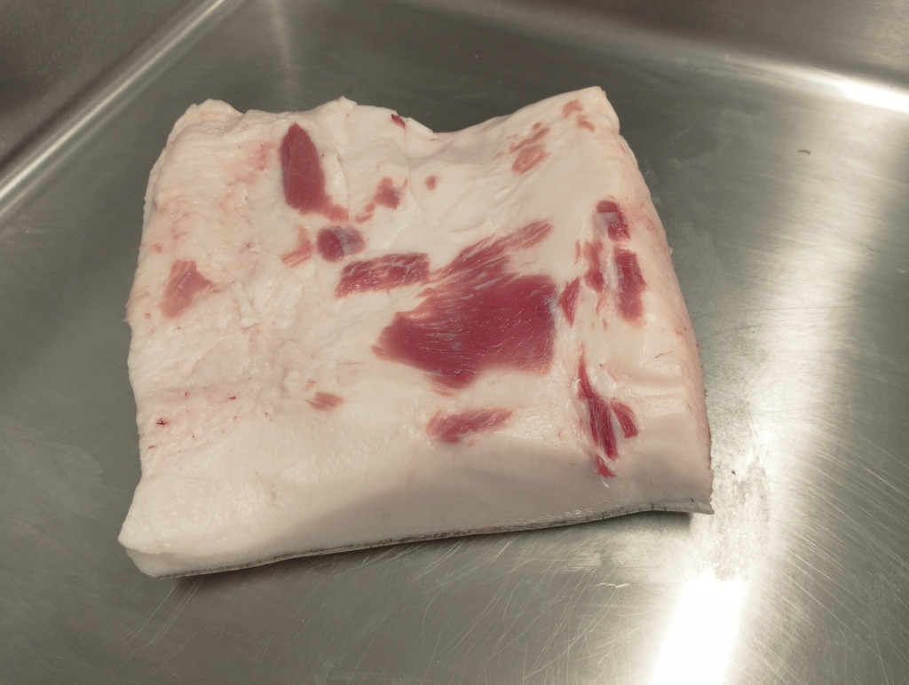 Tepertőnek való mangalica szalonna perzselt bőrrel, 1,5 éves vörös mangalica hízóból.