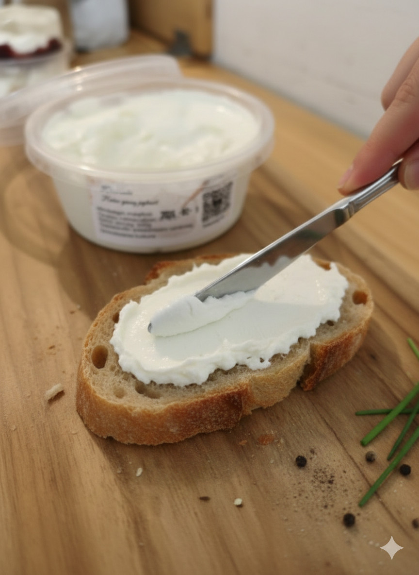 Krémes, selymes állagú sajtkrémünk friss, pasztőrözött tehéntejből készül, hagyományos eljárással, adalékanyagok nélkül. Íze lágyan tejfölös, természetesen telt és harmonikus – igazi alapdarab a konyhában.