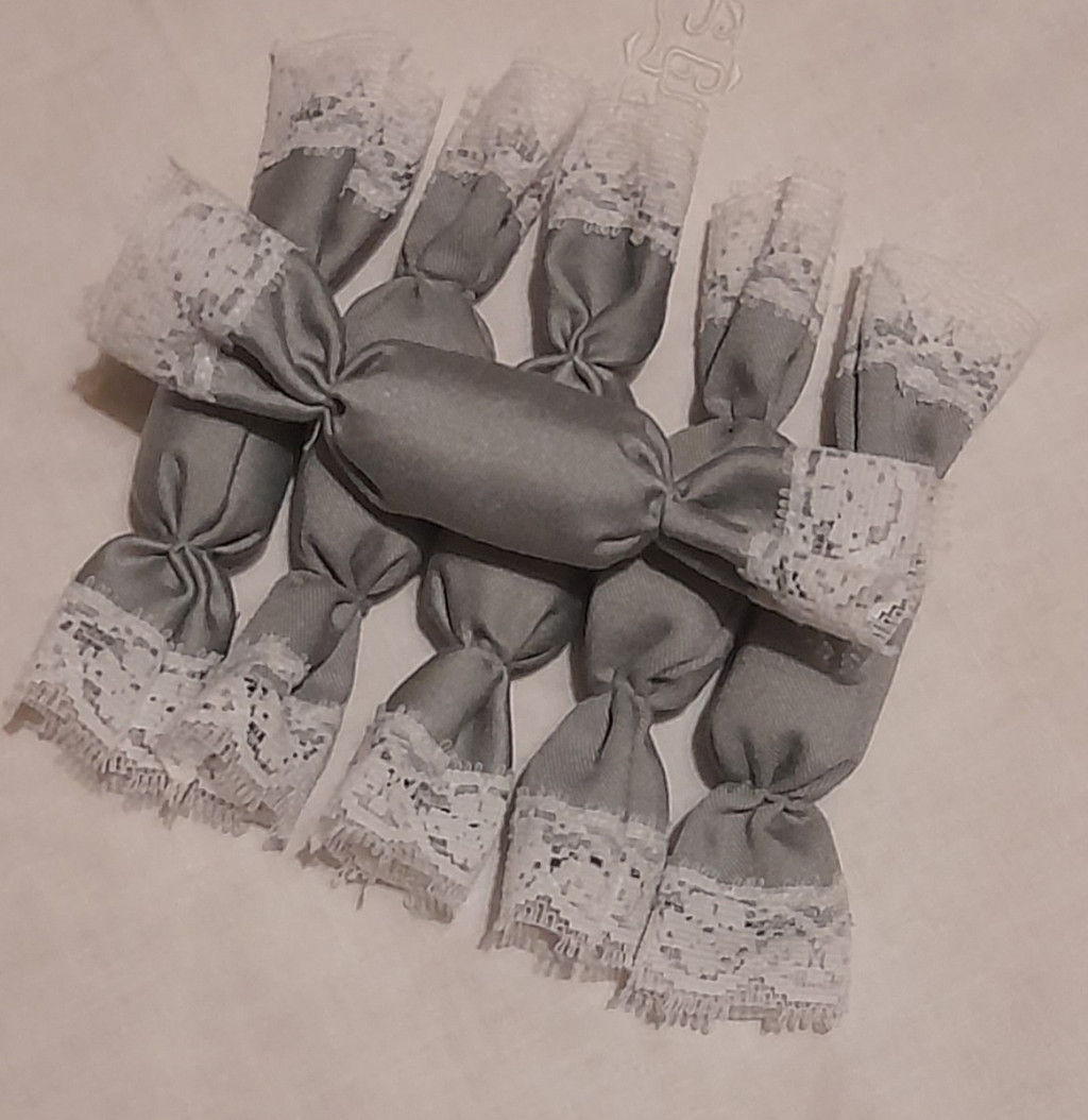 Kézzel készített textil (szatén) szaloncukor csomag, amely kiváló karácsonyfadísz, ünnepi lakásdekoráció, de ajándék/ajándékkísérő is lehet. Mérete azonos az eredetivel.