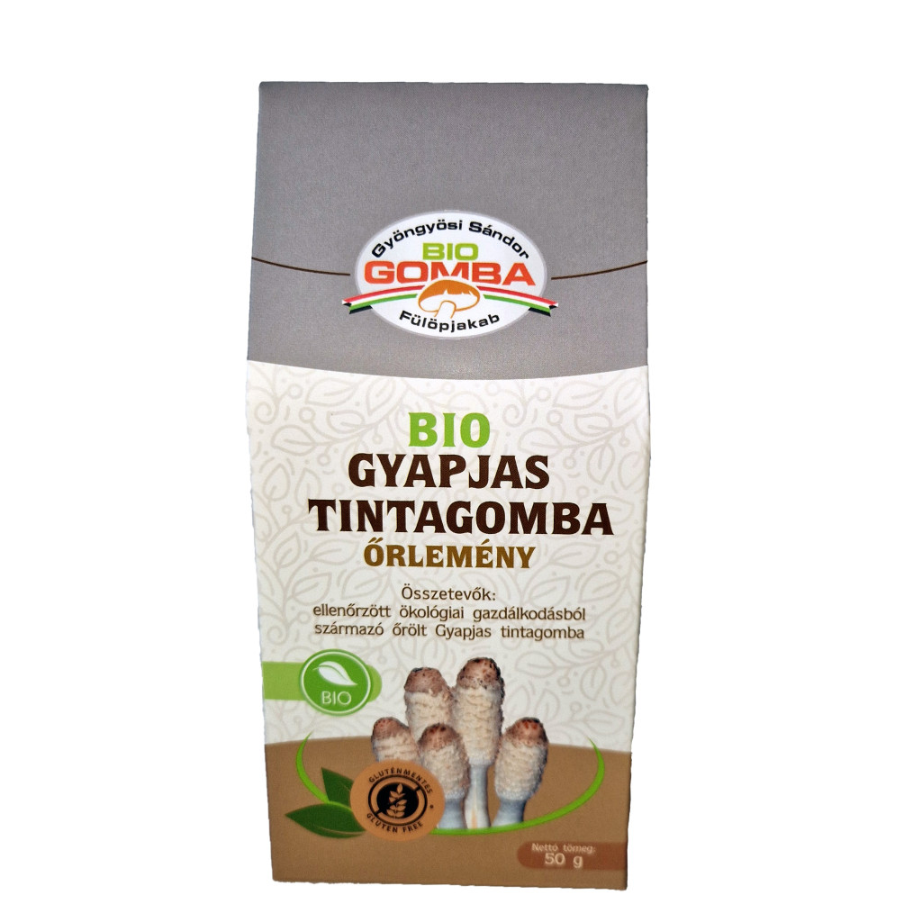 A cukorbetegek diétájának szerves része lehet! Csomagolás: őrlemény aromazáró bio tasak, dobozban Nettó tömeg: 50g bio gyapjas tintagomba őrlemény. Összetevők: Ellenőrzött ökológiai gazdálkodásból származó őrölt gyapja tintagomba őrlemény Termékünk az Ön egészségét, az egészséges életmódot, az egészséges öregedést szolgáló bio minősítésű, természetes eredetű, 100%-ban EU alapanyagokból előállított egészségbarát élelmiszert! ŐRLEMÉNYEINK A GOMBA TERMŐTESTÉT ÉS SPÓRÁJÁT EGYARÁNT TARTALMAZZÁK! TERMÉSZETES ÖSSZETEVŐK, TERMÉSZETES FORMÁBAN! Ajánlott fogyasztása: naponta 2-szer 1 mokkáskanál (2 g) ételhez, italhoz keverve. Minőségét megőrzi: a csomagoláson feltüntetett időpontig. A Gyapjas tintagomba természetes élőhelyei a rétek, de kertekben is találkozhatunk vele. Fehér színű, pikkelyes felületű kalapja, hosszúkás alakja jól megkülönbözteti más gombáktól. A gyapjas tintagomba beérését követően tintaszerűen, fekete színnel szétfolyik. Erre utal a gomba neve. Milyen összetevőkből áll a gyapjas tintagomba őrlemény? Tápérték 100 g termékben: Energia 582 KJ, 137 Kcal; Zsír 0,8g (amelyből telített zsírsavak 0,2 g); Szénhidrát 12,2g (amelyből cukrok 1,2g); Fehérje 20,3 g; Só 0,2 g. A tápértéktáblázatban feltüntetett adatok tájékoztató jellegűek, ingadozásuk előfordulhat. A gyapjas tintagombában számos ásványi anyag és nyomelem található, mint például kálium, nátrium, magnézium, vas, kalcium, mangán, cink és réz. Vitaminok közül a C-vitamin, a B1- és B2-vitamin és a niacin van benne nagyobb mennyiségben. Hogyan érdemes fogyasztani? Forrázatot készítünk: fél mokkáskanálnyi gombaport kávés csészébe rakunk, majd a forralóban felforralt vízzel (kb. 0,5-1 dl) leforrázzuk, állni hagyjuk, amikor lehűl, elfogyasztjuk. Ízlés szerint ízesíthetjük fahéjjal. Készíthetünk belőle teafőzetet is. Hatását fokozhatjuk zöld tea és fahéj hozzáadásával. Fogyasztása étkezések után javasolt. Cukorbetegségre szedett gyógyszer vagy inzulin használata esetén várjunk fél órát a gombapor elfogyasztásával. Mennyit fogyasszunk a gyapjas tintagomba őrleményből? Kevésbé súlyos esetben naponta egyszer fogyasztjuk fél mokkáskanállal! Súlyosabb esetekben fő étkezések után, de naponta legalább kétszer fogyasztjuk és napi 2x 1 mokkáskanálnyi adagban! Vevői kérdések: A forró folyadék nem teszi tönkre a gombában lévő hatóanyagokat?A gombában lévő hatóanyagok nem érzékenyek a magas hőmérsékletre. Sőt a forró közeg segíti a szervezetünknek a hasznosítás folyamatát. Mennyit fogyasszak a gomba őrleményből? Csapott, vagy púpos kávés kanál az adag? Mivel természetes anyagról beszélünk, így nem lényeges a milligramm pontosságú adagolás. Amit a szakirodalmak írnak a Gyapjas tintagombáról: A jelenleg hatályban lévő EU-s és magyar jogszabályok alapján az étrend kiegészítőknek ill. semmilyen más élelmiszernek (pl. fokhagyma) gyógyhatást tulajdonítani nem szabad, ezért a következőkben leírtak nem vonatkoztathatók a Gyöngyösi és Társai Kft Biogombás, valamint Dr Ganolife védjeggyel ellátott termékeire és más cégek étrend kiegészítő és élelmiszer termékeire sem. Gyapjas tintagomba és a metabolikus szindróma A metabolikus szindróma a XX. század népbetegsége, mely leginkább rossz táplálkozási szokásainkkal hozható összefüggésbe, eredménye pedig a szív- és érrendszeri betegségek gyakoribb előfordulása. Ezek a betegek elhízottak, vérnyomásuk, vérzsír értékük, valamint vércukor- szintjük egyaránt magas. Egy vizsgálat alapján úgy tűnik, a gyapjas tintagomba képes lehet a metabolikus szindróma alapját is képező vércukorszintet mérsékelni metabolikus tüneteket mutató kisállatokon.